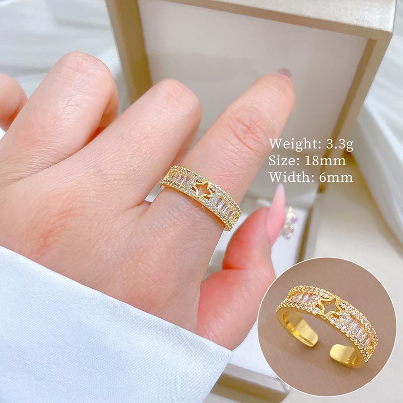 Real Gold Light Luxury Lucky Grass Full Diamond Ring Opening Adjustable Simple Jewelry Japanese Ring Couple Ring