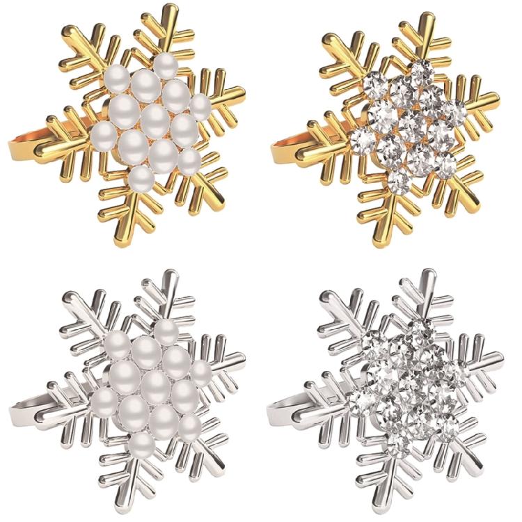 6pcs Christmas Napkin Rings Set Snowflake Napkins Buckles Banquet Accessories