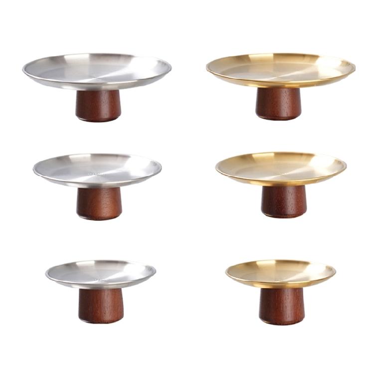 Elevates your dining experience with the fruit plate, a stainless steel serving tray bottom features a wood base, providing durability and stylish appearance.