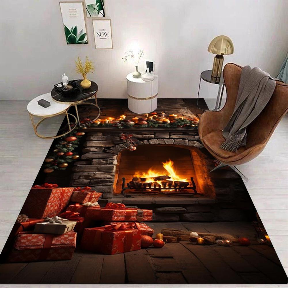 Vintage Christmas Fireplace Background Carpet Christmas Tree Gift Garland Indoor Home Christmas Decoration Carpet