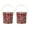 2pcs Decorative Christmas Candy Boxes Handheld Round Bucket Portable Sweets Tins with Handle for Family Gathering