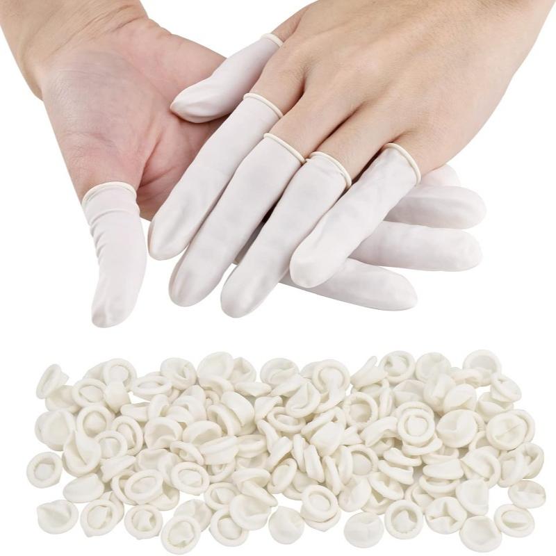 200 Pcs Disposable Finger Cover Natural Rubber Gloves Non-slip Latex Finger Cots Fingertips Protector Gloves Non-toxic Nail Tool