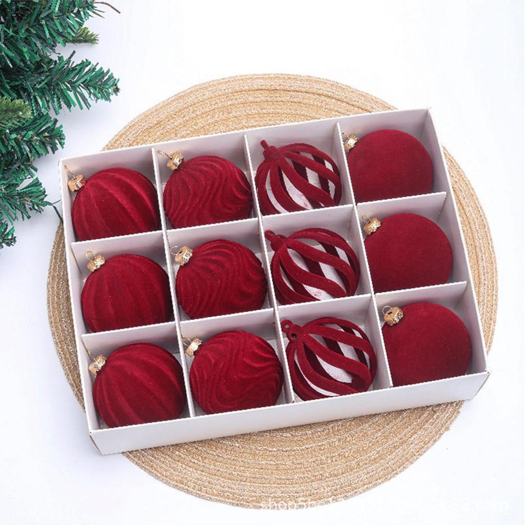 Christmas Tree Balls 12 Pieces Velvet Shatterproof Shatterproof Balls Christmas Tree Ornaments For Indoor Outdoor Mantel Kitchen