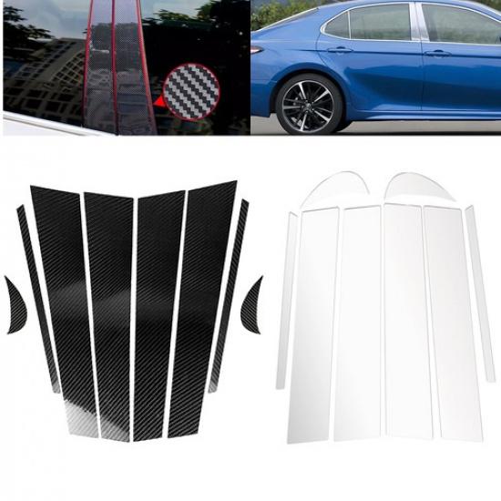 8PCS Chrome/Carbon Post Fiber Pillar Trim Door Window For Toyota Camry 2018-2024