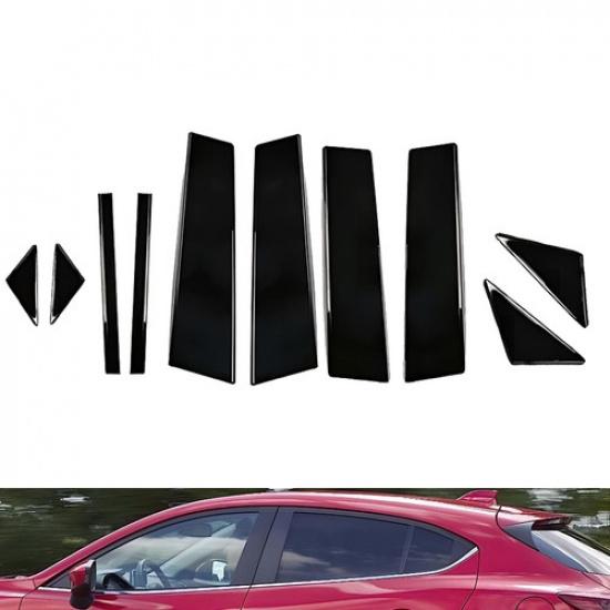 10PC Pillar Post Trim Door Window Docal Glossy Black For Mazda 3 Axela 2014-2018