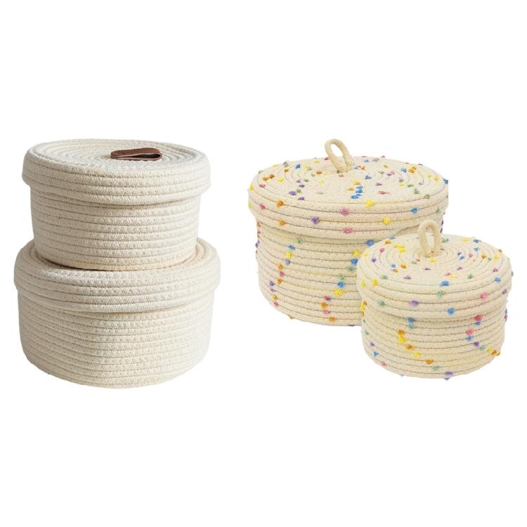 2pcs Sturdy Cotton Rope Storage Baskets With Lid Designs for Keeping Living Space Neat and Tidying Household Use