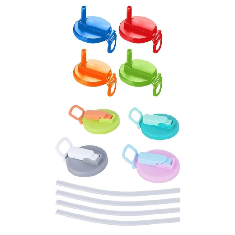 4pcs Portable Can Covers for Sodas and Beer Cans Silicone Can Lid with Drinking Straw Leak Proof Beverage Cans Caps