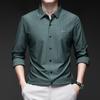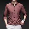 Spring and Autumn Men's Seamless Ice Silk Long-sleeved Shirt, High-end Dad Wear, Non-iron, Anti-wrinkle Casual Striped Shirt