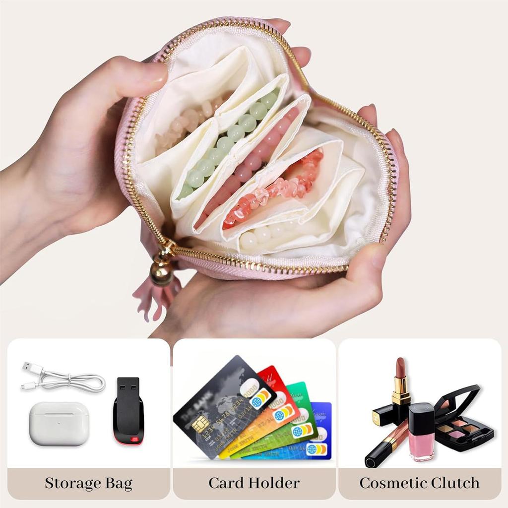 Jewelry Travel Storage Box with Zipper Travel Women Necklace Bracelets Ring Storage Case Small Velvet Jewelry Organizer