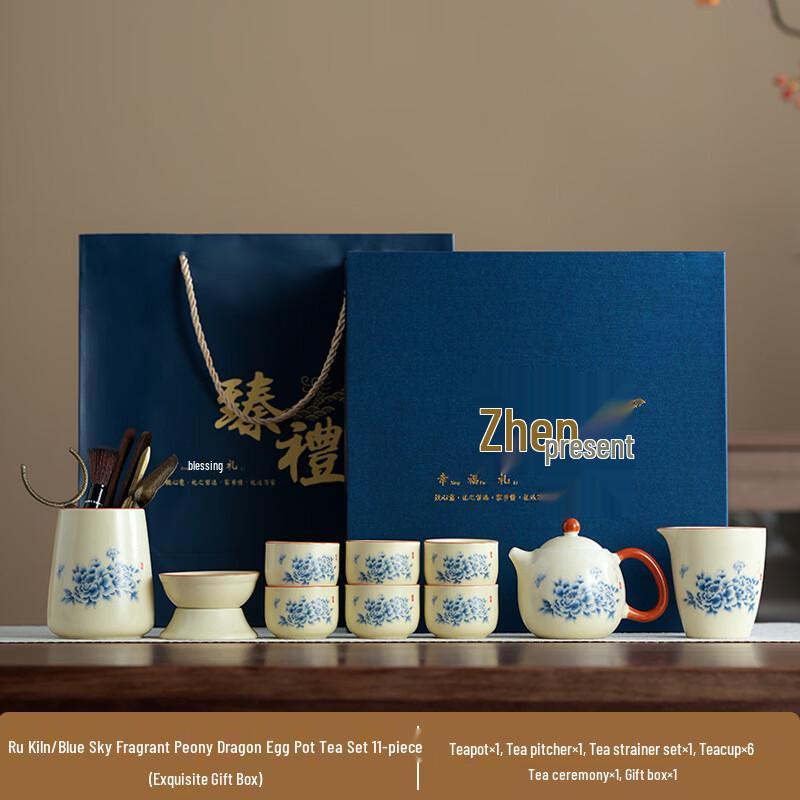 Ru Kiln Entwined Lotus Ceramic Tea Set