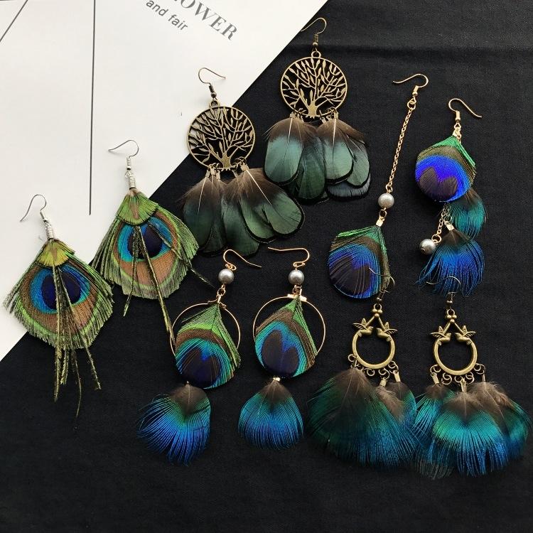 Unique Exaggerate Feather Earrings Creative Feathers Long Earrings Trendy Boho Big Earrings Women Statement Jewelry Wholesale