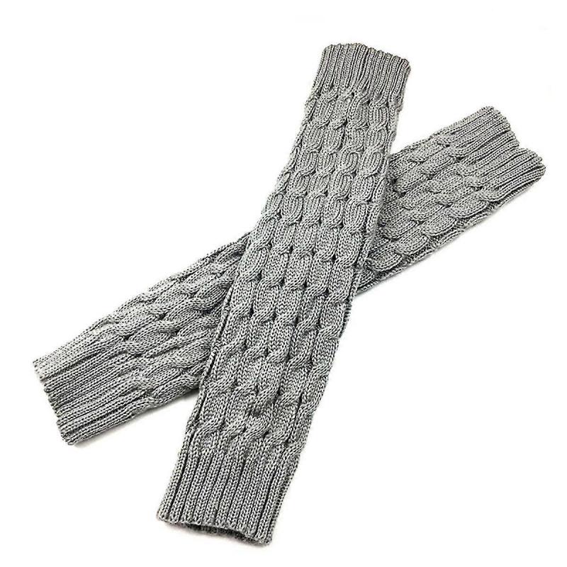 Women Ladies Winter Warm Long Leg Warmers Cable Knit Knitted Crochet Long Socks(Light Grey)