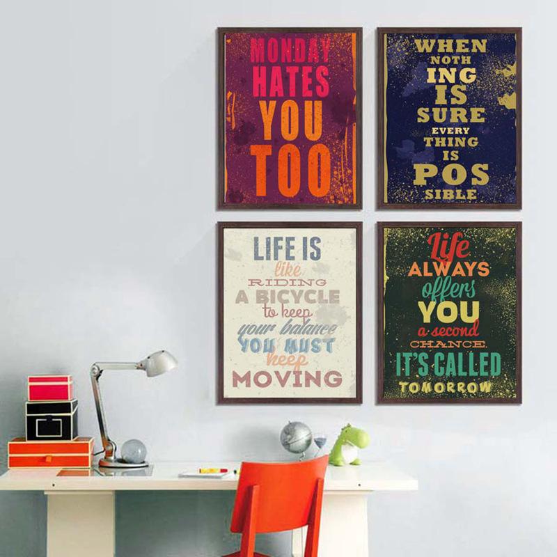 Classical Vintage Living Room Decorative Painting Office Inspirational Sentences Wall Canvas Painting English Alphabet Picture