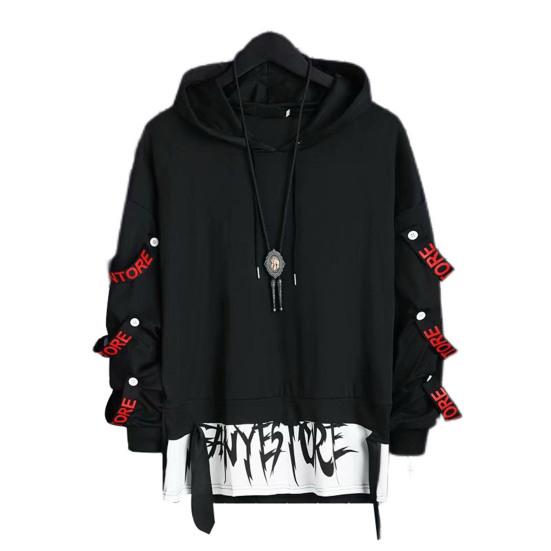 Featuring letter print, strap decor, fake two-pieced, and contrast color designs, this hoodie enables you to look approachable and vital.