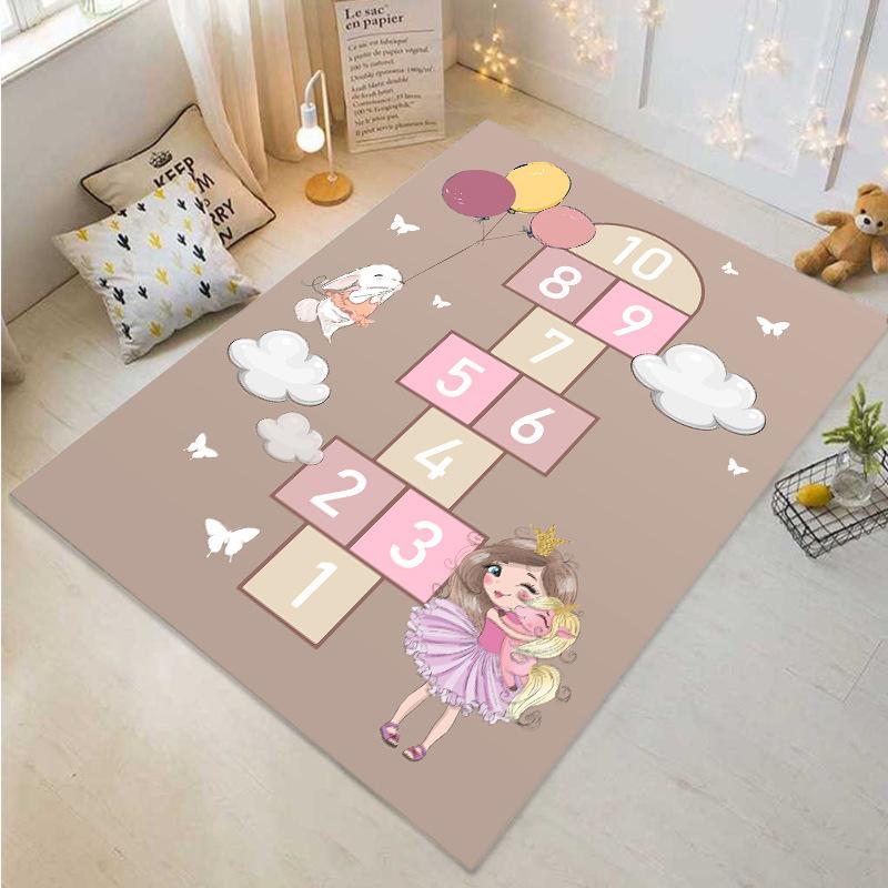 Pink Children's Hopscotch Boy and Girl Cartoon Game Carpet Kindergarten Early Education Baby Crawling Mat Non-slip Mat Home