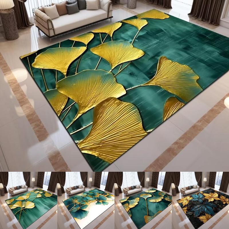 Luxury Ginkgo Biloba Printing Large Area Rug Non-Slip Wear-resistant Carpet for Living Room Bedroom Soft Floor Mat Home Decor
