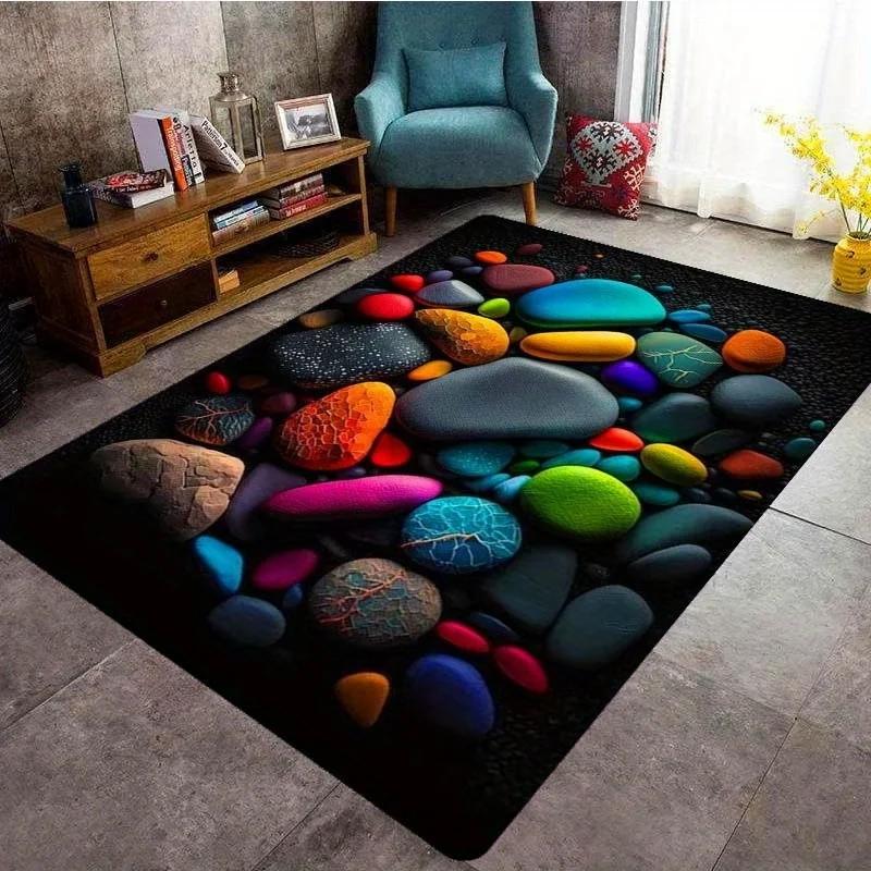 Colorful Pebble Print Rug Non-Slip Floor Mat for Living Room Bedroom Bathroom Unique Area Rug Home Decorative