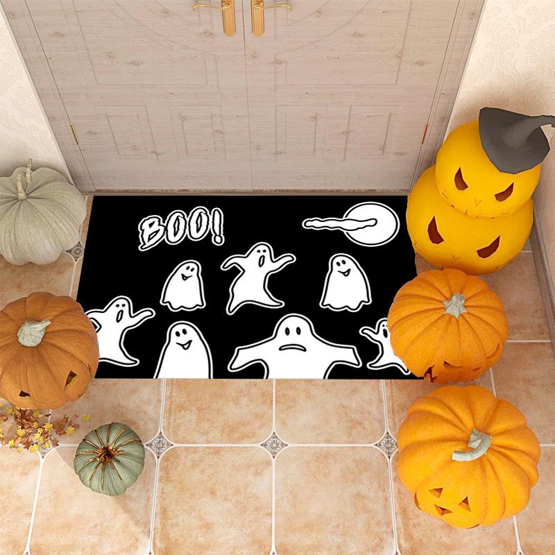 Halloween Ghost Boo Festive Door Mat Non-slip Washable Indoor Outdoor Rug Carpet for Front Door Entryway Holiday Home Decoration