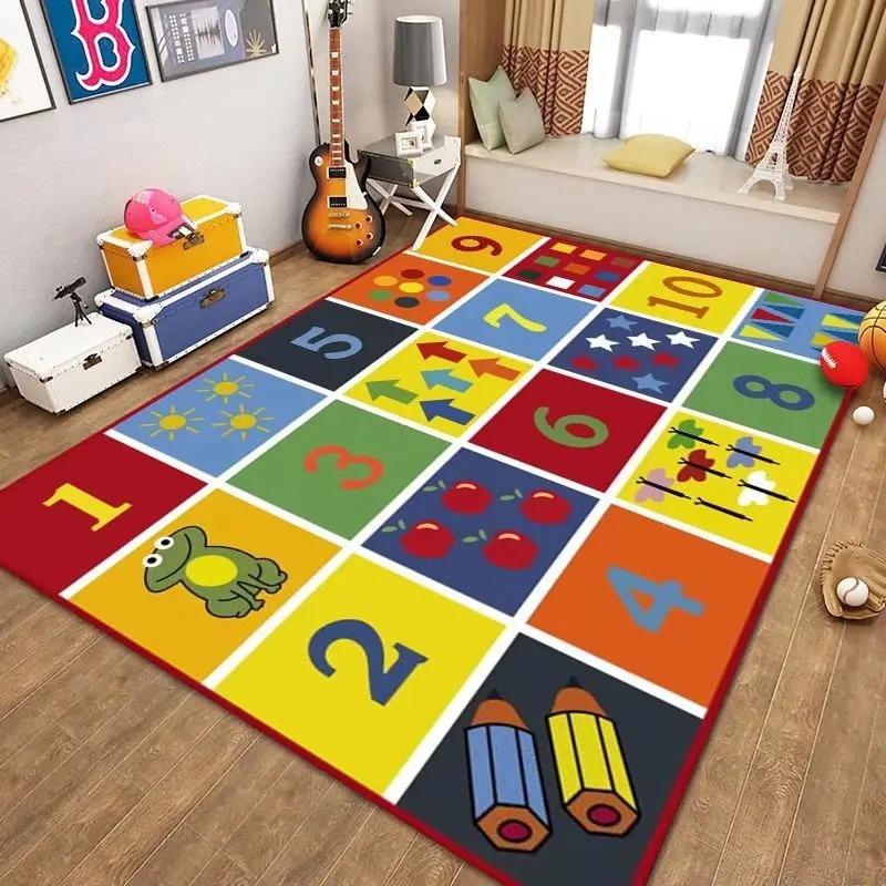 Kids Educational Carpet Alphabet Number Animal Sport Pattern Large Area Rug for Children's Room Living Room Home Decoration
