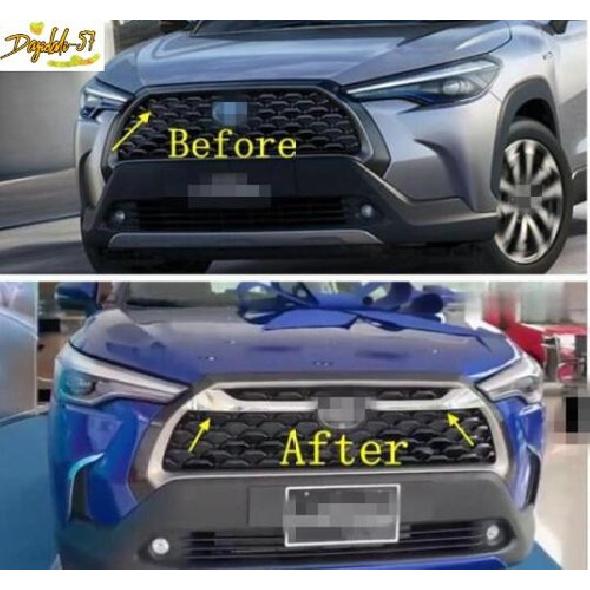 ABS For Corolla Cross Front Middle Billet Grille Grill Stripes Cover Trim