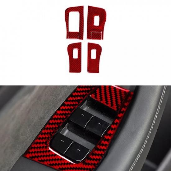 Red Carbon Fiber Window Lift Button Panel Cover Trim For Tesla Model 3/Y 2017-22