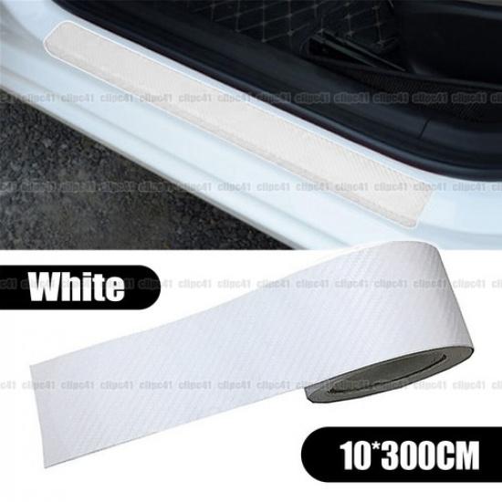 1Pc White Carbon Fiber Car Door Sill Scuff Cover Anti Scratch Sticker 10x300cm