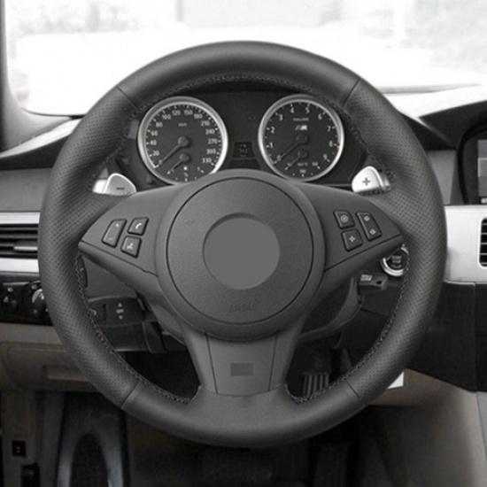 Black Leather Steering Wheel Cover For BMW 5 6 Series E60 E61 530d 2003-2010