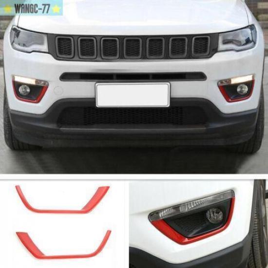 For 2017- Jeep Compass ABS Red Front Fog Light Lamp Strip Cover Trim 2X New
