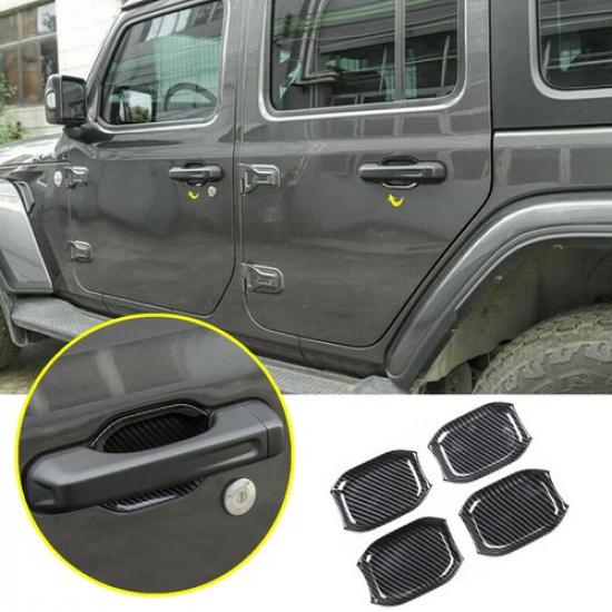 For - Jeep Gladiator JT Carbon Fiber Look Door Handle Bowl Cover Trim 4P