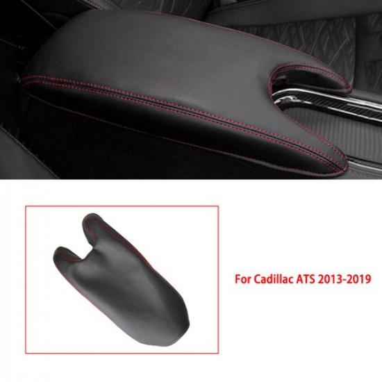 Black+Red Line Console Armrest Box Leather Cover Trim For Cadillac ATS 2013-