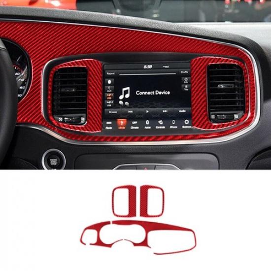 4pcs Red Carbon Fiber Car Front Dashboard Panel Cover For Dodge Charger 2015-22