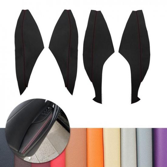4* Black+Red Inner Door Panel Armrest Leather Cover Skin For Toyota Corolla