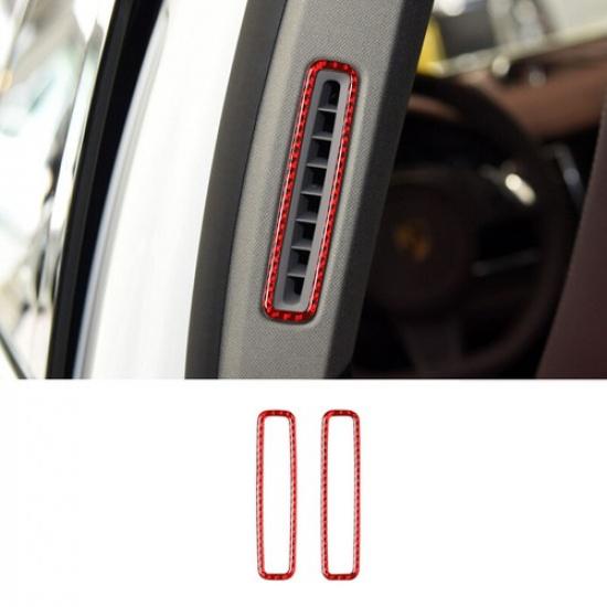 2pcs Red Cabon Fiber Car Inner B-pillar AC Vent Cover For Porsche Panamera 10-16
