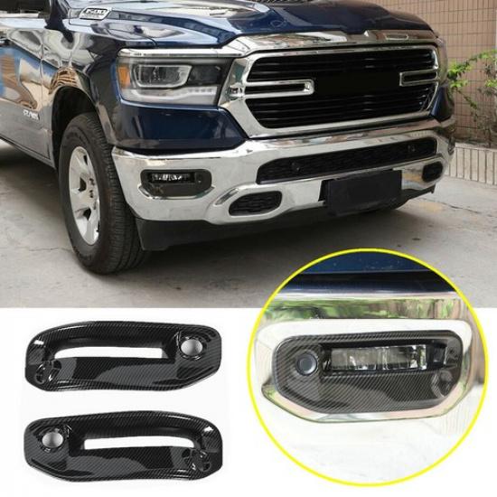 For - Dodge Ram 1500 Carbon Fiber Front Fog Light Lamp Cover Trim Frame