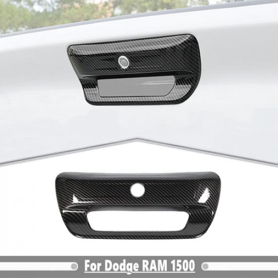 For -2025 Dodge Ram 1500 Carbon Fiber Style Rear Tailgate Handles Cover Trim