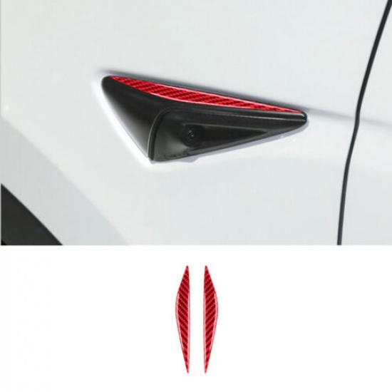 2pcs Red Carbon Fiber Car Side Fender Camera Panel Strip For Model 3 Y 2017-