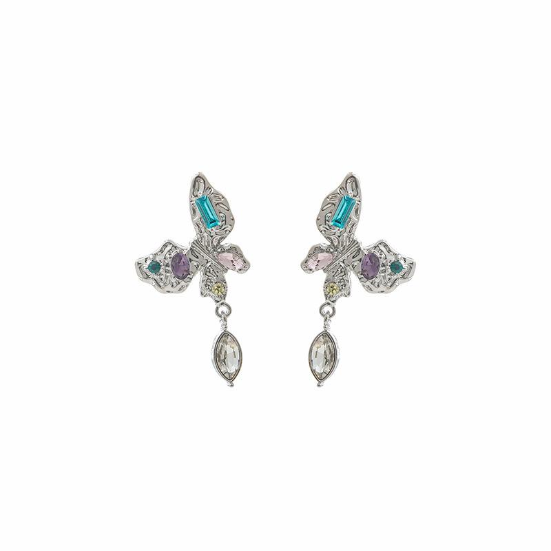 Metal Butterfly Colored Diamond Stud Earrings, Simple Pleated Texture Water Drop Earrings, Light Luxury Geometric Square Earrings For Women