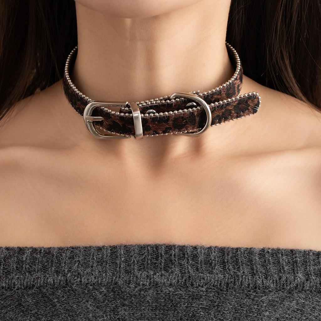 Sexy Spice Girl Leopard Print Belt Buckle Collar Women'S Niche Punk Subculture Design Sense Trendy Fashion Apparel