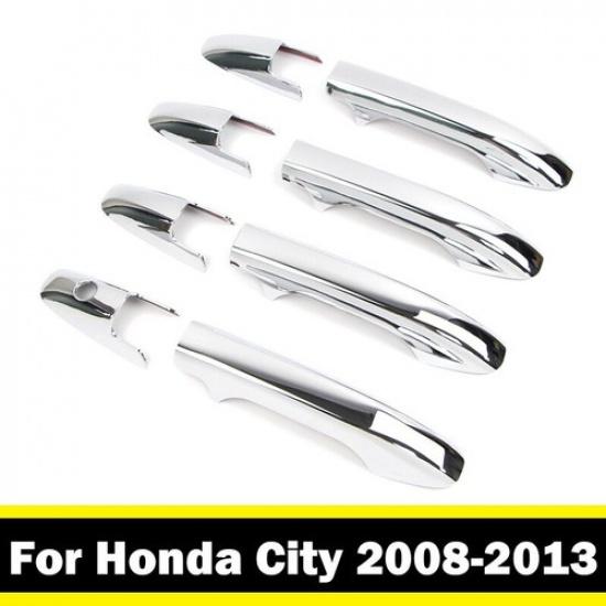 8Pcs Chrome Car Door Handle Frame Panel Cover Trim For Honda City 2008-2013