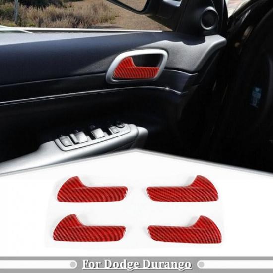 For 2011-2024 Dodge Durango Red Carbon Fiber Inner Door Handle Cover Trim Strips