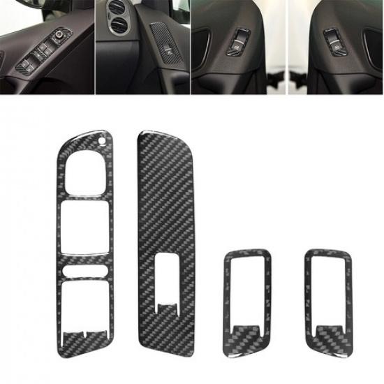 4Pcs For Volkswagen Tiguan Carbon Fiber Interior Door Control Kit Cover Trim