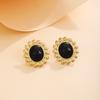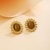 Fashion Retro Cat Eye Texture Earrings, Light Luxury High-End Geometric Metal Wind Sunflower Temperament Stud Earrings