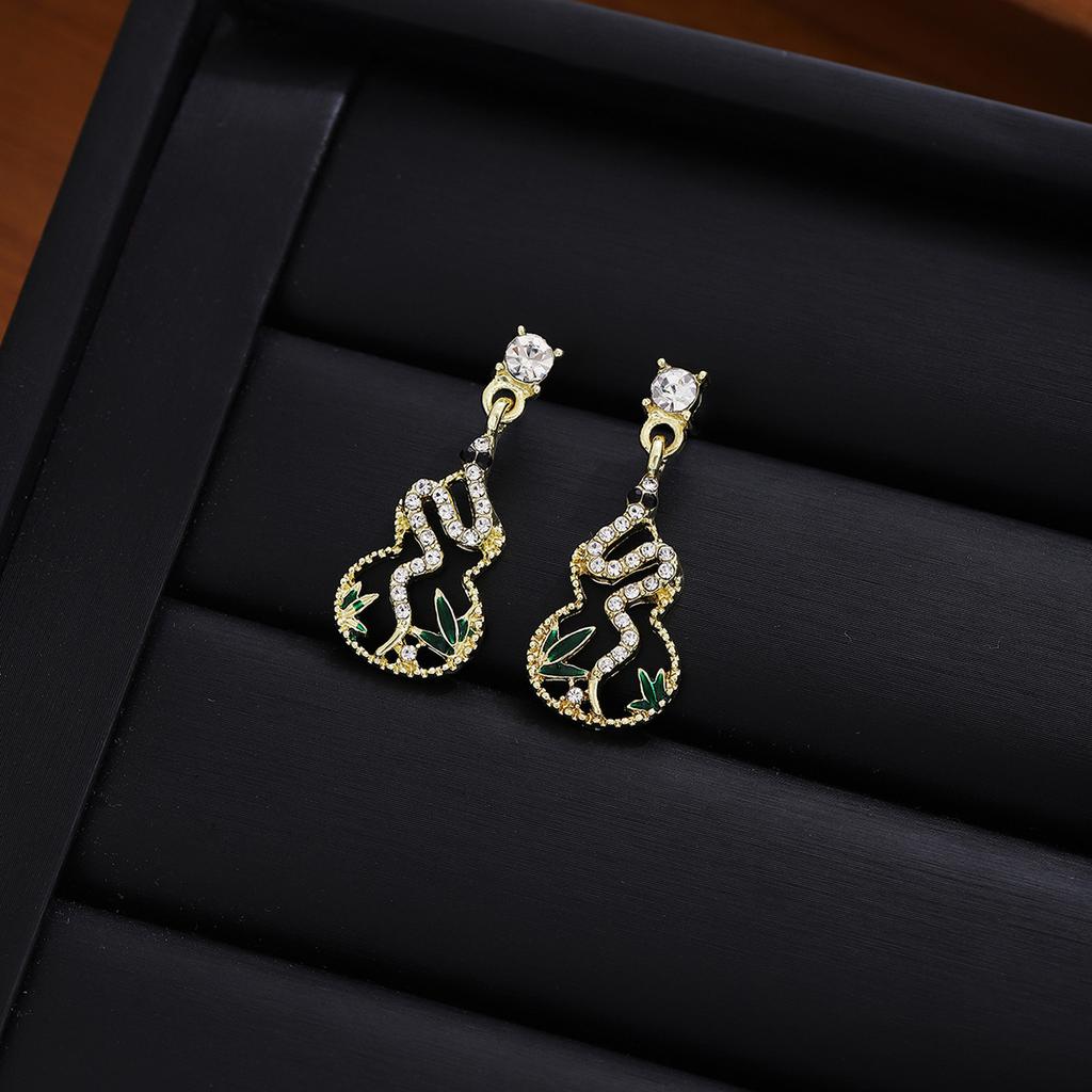 Diamond-Encrusted Bamboo Leaf Hollow Pipa Earrings, National Style Light Luxury High-End Sense, Personalized Exquisite Earrings Women