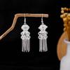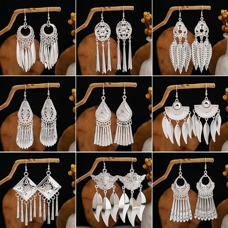 Ethnic Style Miao Geometric Bells Fringed Earrings, Minority Earrings Bohemian Long Leaf Earrings