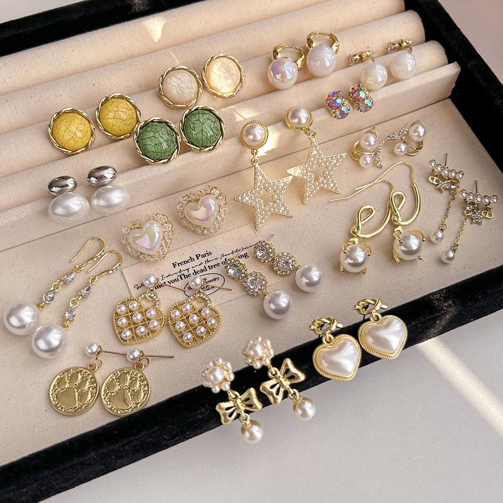 Light Luxury Simple Pearl Earrings Women'S Metal Smooth Pearl Geometric Star Love Ear Jewelry Of The Same Style
