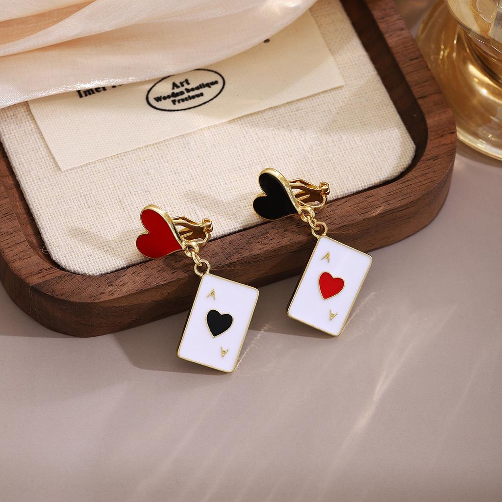Oil Drop Heart Spade Playing Card Earrings, Light Luxury Design Sense Asymmetrical Personality Fashion Earrings