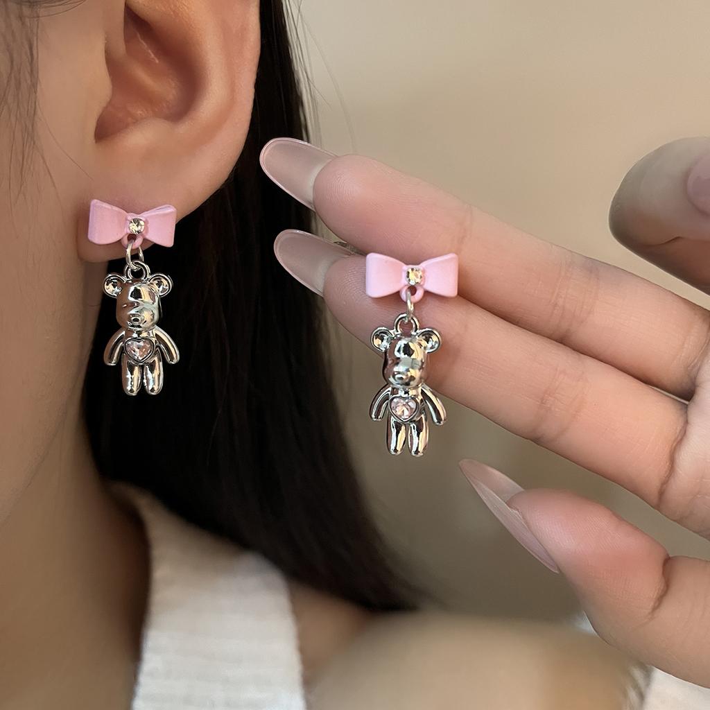 Personalized Niche Daily Glossy Love Bear Stud Earrings, Metal High-End Bow Earrings
