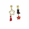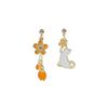 Fashion Cartoon Long Asymmetrical Color Matching Flower Cat Fox Fan Stud Earrings Childlike Playful Earrings Woman