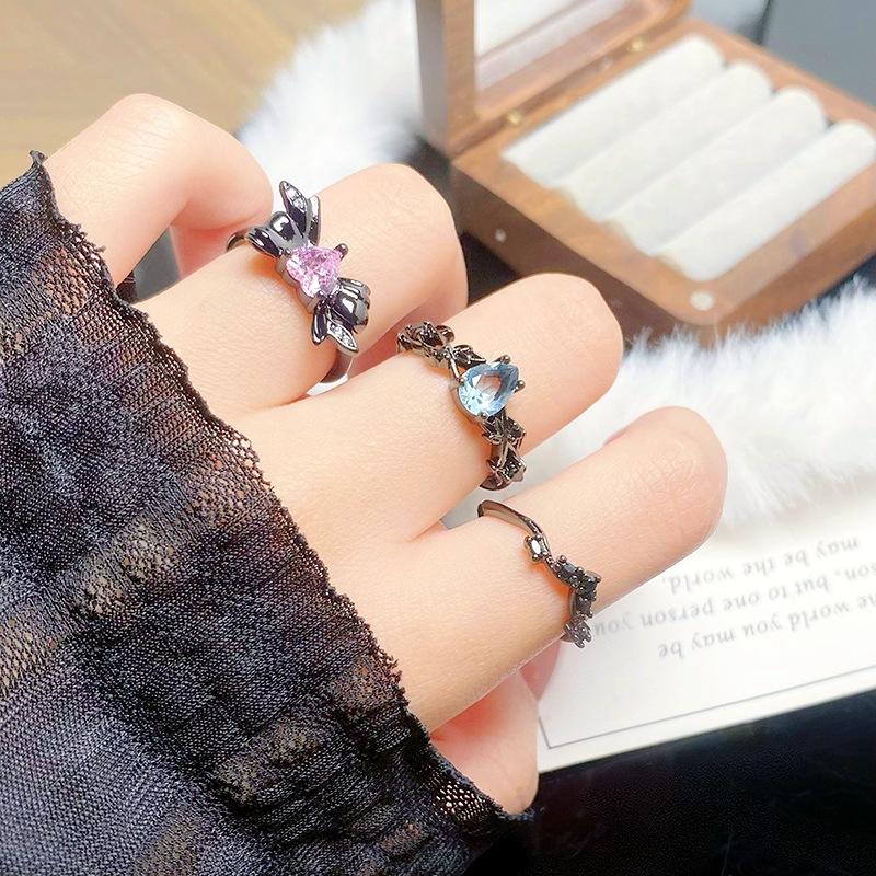 Dark Punk Personality Bow Love Zircon Stacked Open Ring Niche Genderless Style High Sense Ring