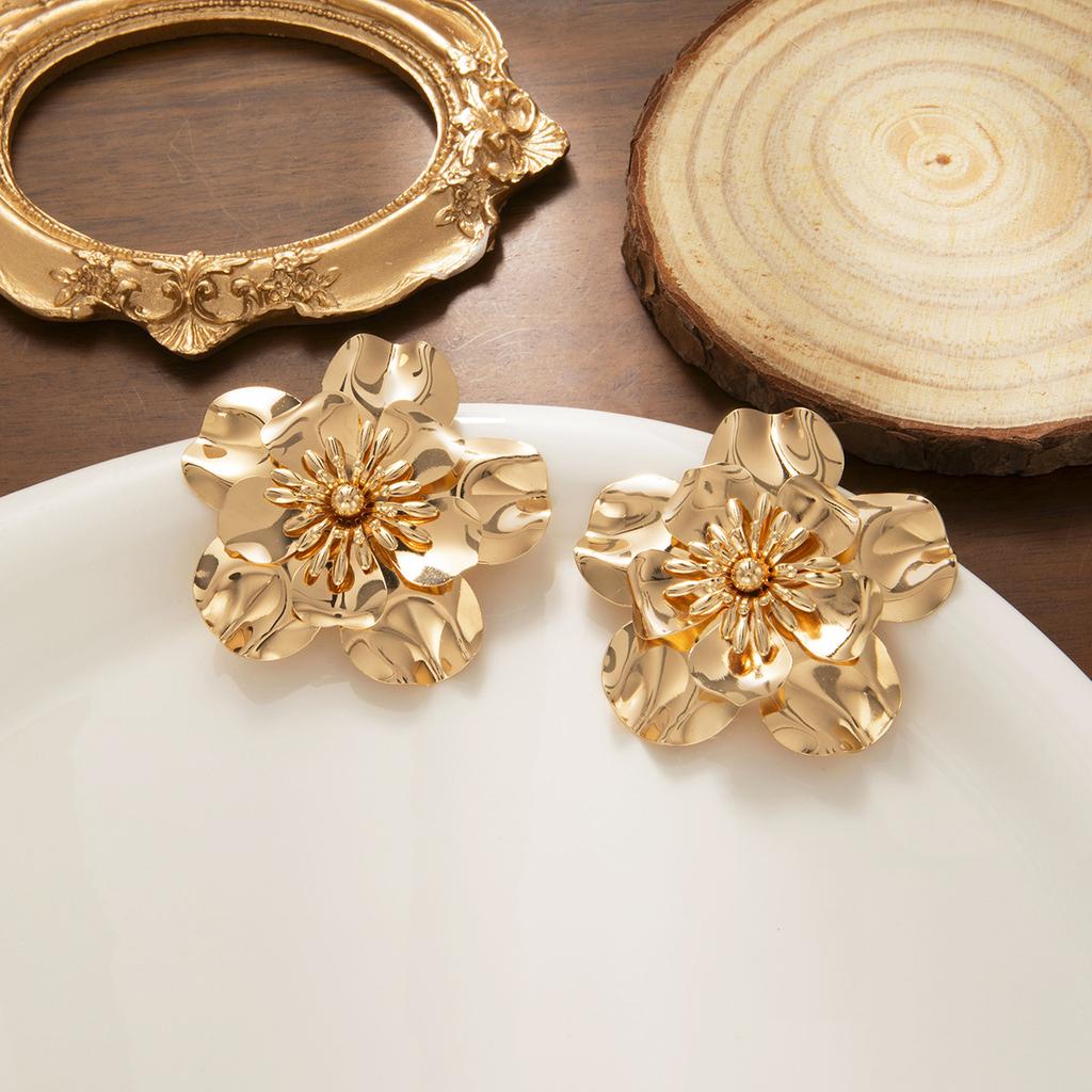 Creative Retro Metal Wind Stud Earrings Personalized Glossy Heavy Industry Flower Earrings Trend Exaggerated Light Luxury Earrings